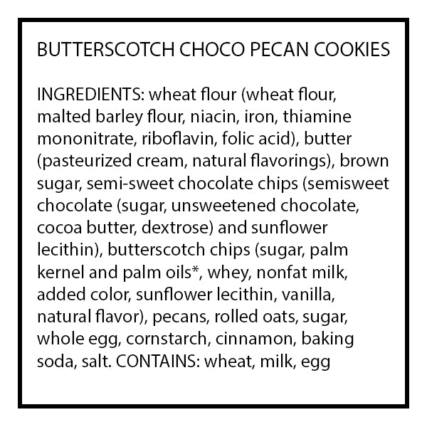 Each pack contains 1 cookie. Net Weight: 2.6 oz pack. Recyclable packaging. Shelf life 90 days.